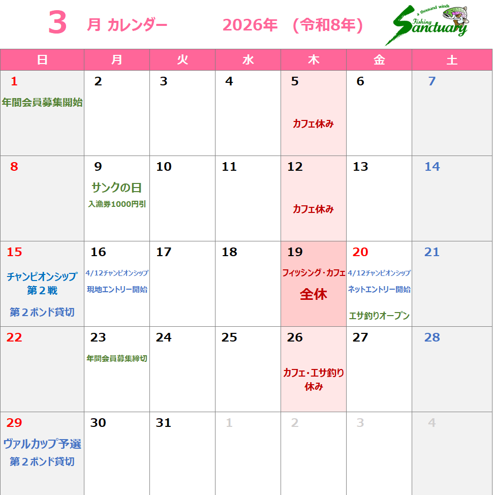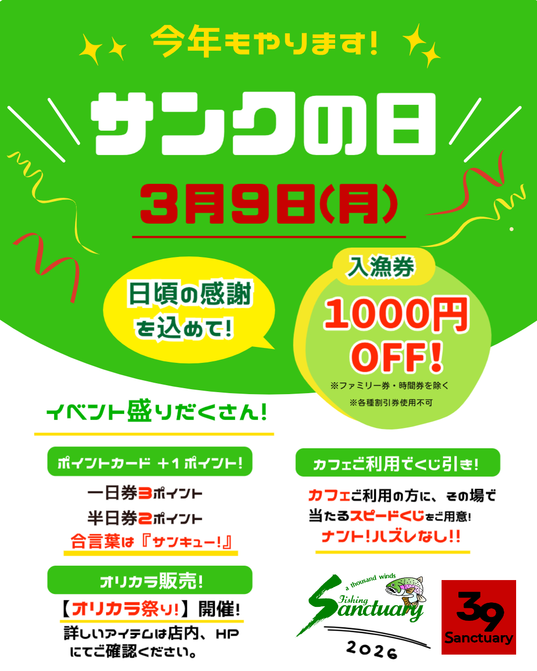| 第3ポンド | ルアー | お休み 今シーズンの営業を終了しました |