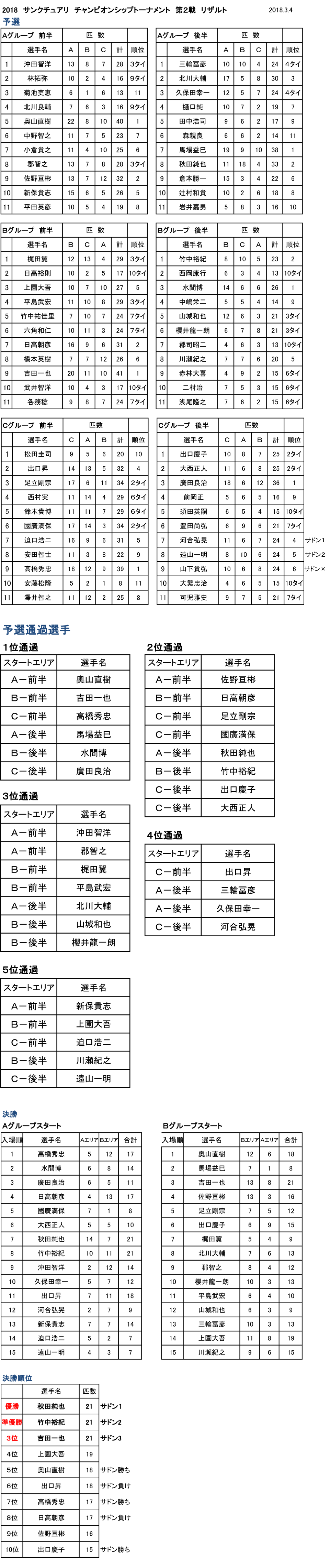 2018年 サンクチュアリ チャンピオンシップトーナメント 第2戦