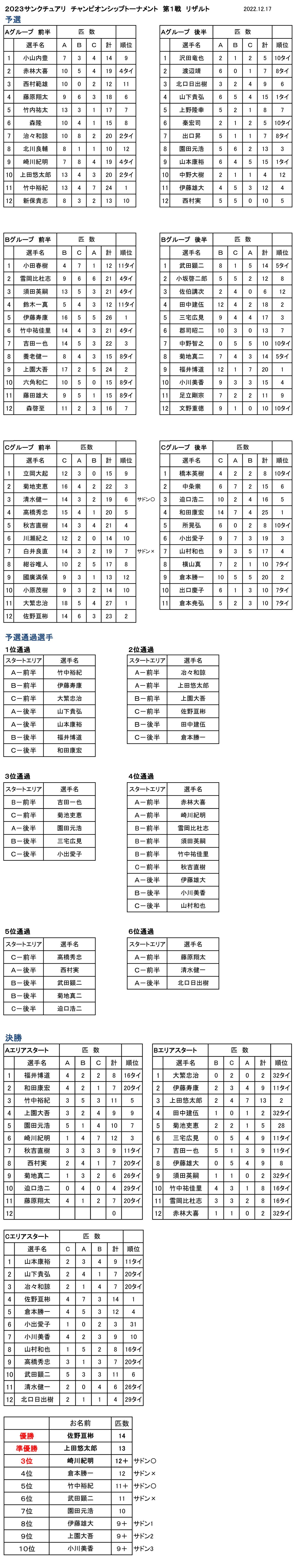 ■2023年 サンクチュアリ チャンピオンシップトーナメント 第1戦